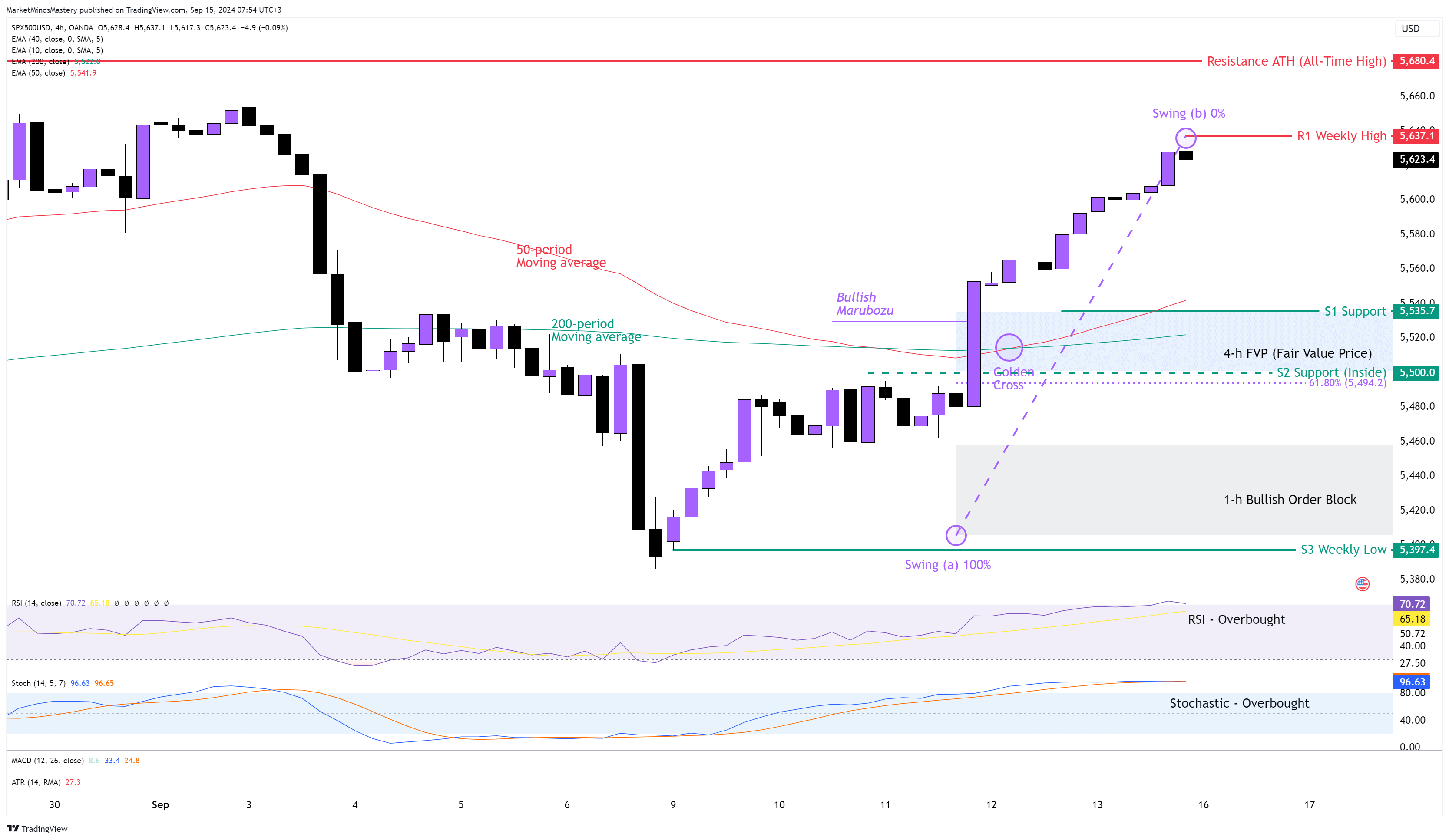 من ناحية أخرى، إذا استمر السعر في التحرك لأعلى، ستكون منطقة المقاومة الأولى هي قمة الأسبوع السابق، حوالي 5637 دولارًا. إذا اخترق السعر مقاومة R1 واستمر في التحرك لأعلى، فستكون منطقة المقاومة التالية هي سعر ATH، حوالي 5680 دولارًا.