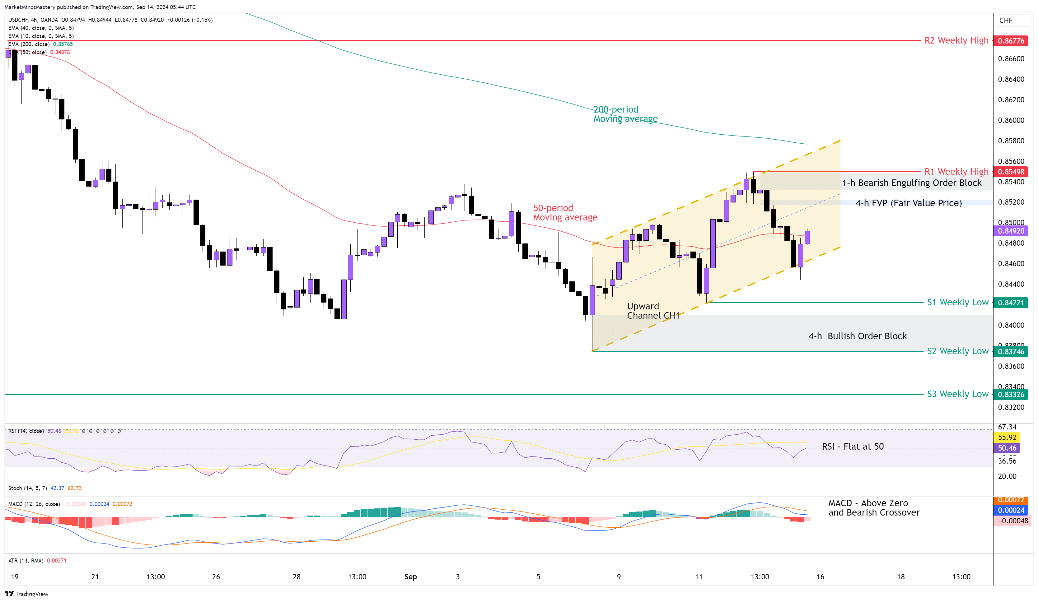 ابتداءً من يوم الاثنين، إذا تحرك السعر لأعلى، فقد يملأ سعر القيمة العادلة حول 0.85200. وستكون قمة الأسبوع السابق هي أول مقاومة لـ R1 عند 0.85498 تقريبًا. تم العثور على كتلة أوامر الابتلاع الهبوطية على الرسم البياني لمدة 4 ساعات في تلك المنطقة. إذا اخترق السعر مقاومة R1 وحافظ على حركته الصاعدة فإن منطقة المقاومة التالية، R2، ستكون حول 0.86776، وهي قمة أسبوعية أقدم.