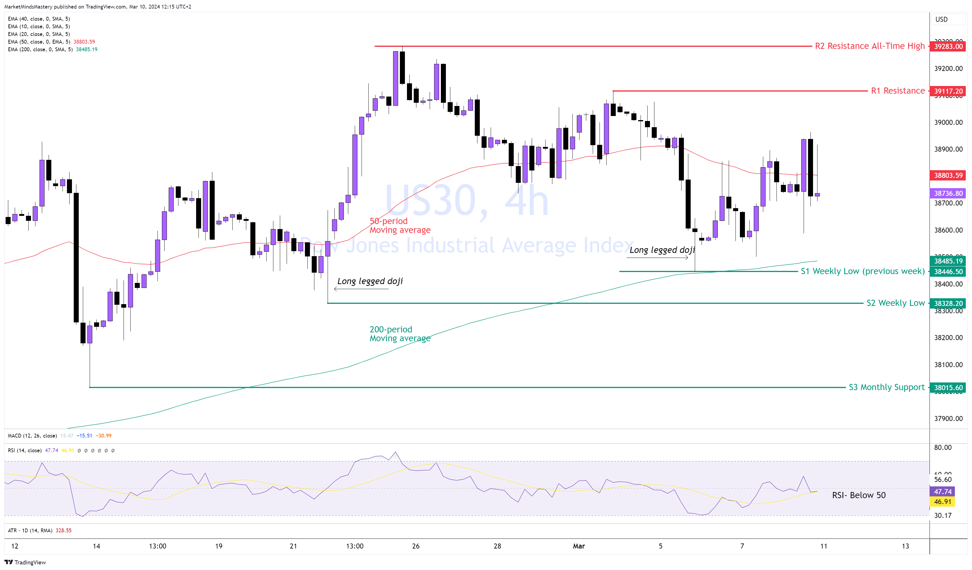 من ناحية أخرى، إذا تحرك السعر لأعلى، فإن المقاومة الأولى، R1، تقع حول 39117.