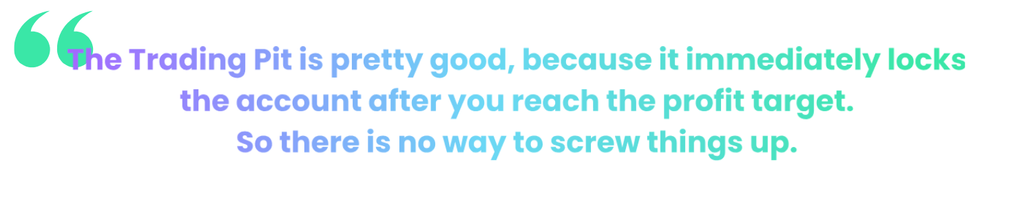 Actually, The Trading Pit is pretty good from that perspective because it immediately locks the account after you reach the profit target. So there is no way to screw things up after you have already reached the target. So that's a very good thing.