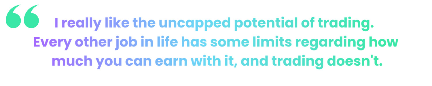 I really like the uncapped potential of it. Every other job in life has some limits regarding how much you can earn with it and trading doesn't have such limits and that's what got me into it.