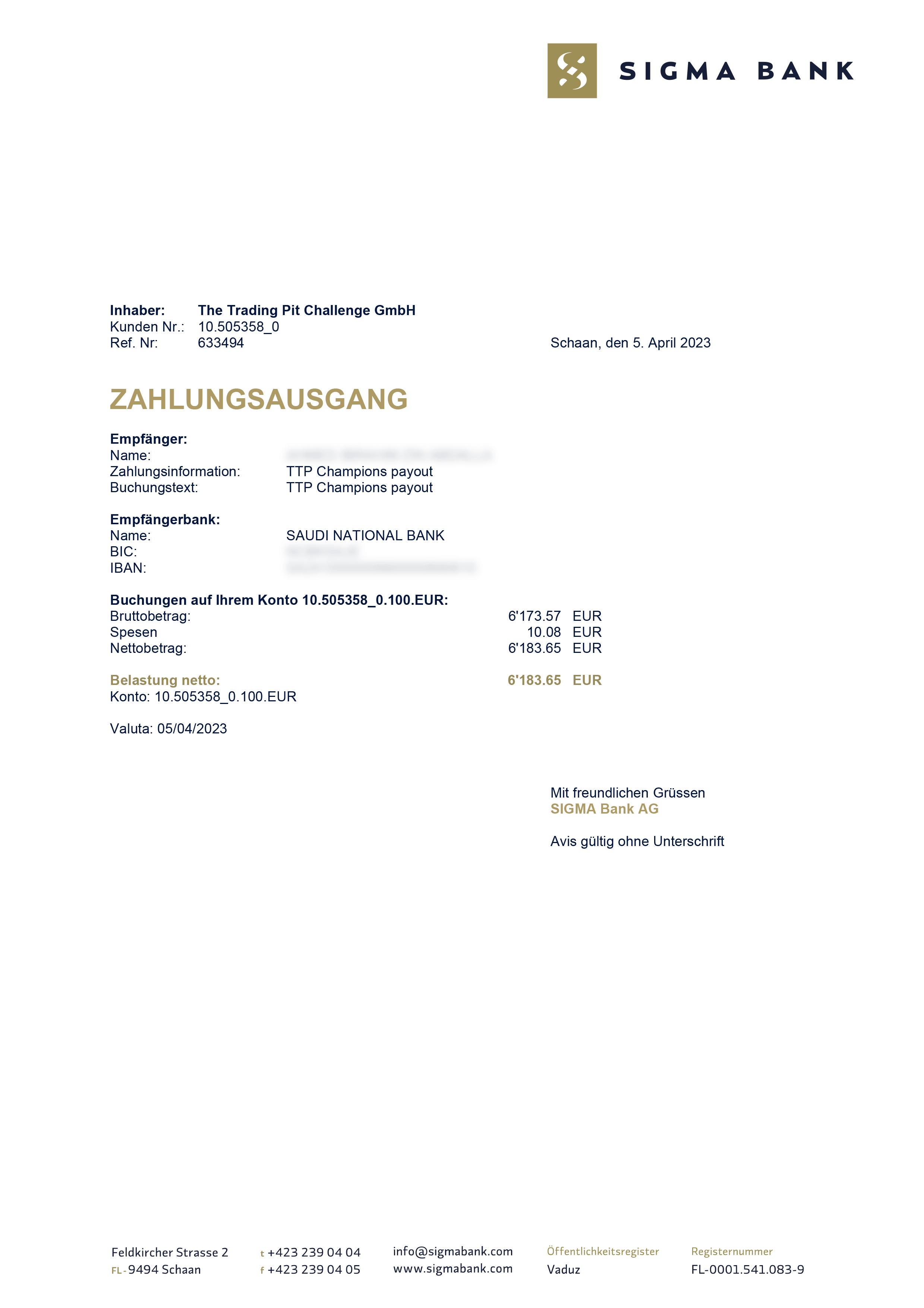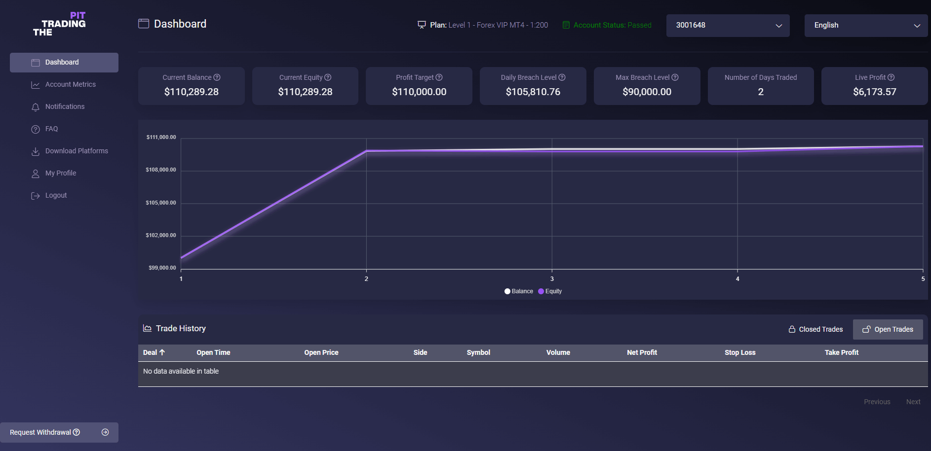 Lo que me hizo confiar en The Trading Pit para mi carrera en el trading fue el hecho de pasar el desafío y la ejecución de su plan de escalado. A lo largo de mi experiencia con The Trading Pit, descubrí que todo lo que prometieron en su contrato se entregó con prontitud. Este nivel de transparencia y profesionalismo me dio confianza en el programa y me permitió enfocarme en alcanzar mis metas de trading con tranquilidad mental.