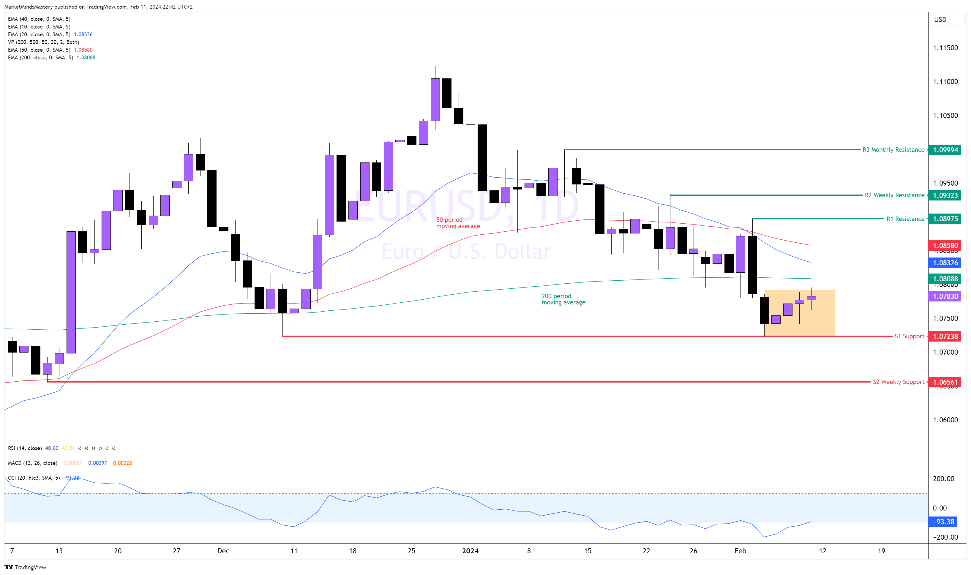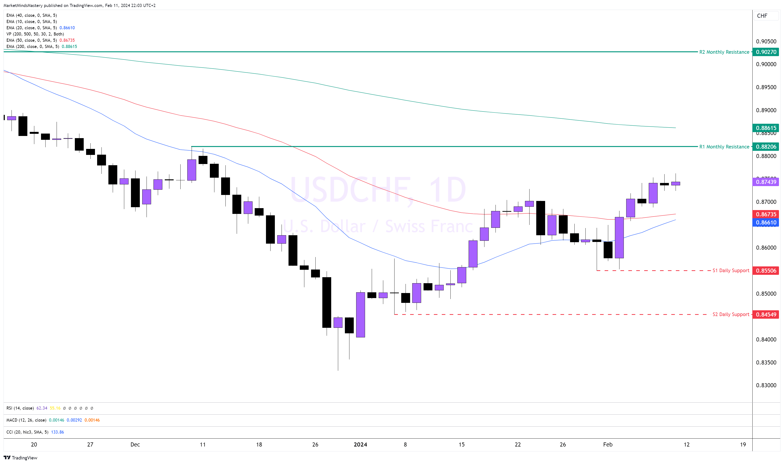 El miércoles, es el turno del Reino Unido de reportar su cifra de IPC, y esperaban ver un incremento del 5,1% que había anteriormente al 5,2%. Si esto sucede y el mercado lo sigue, la libra esterlina podría ganar fuerza por lo que el par GBPUSD podría dar alguna configuración alcista. Además, si el CHF se debilita, el GBPCHF puede albergar algunas oportunidades alcistas sólidas. El siguiente evento significativo para el día será el informe del PIB (Producto Interior Bruto) de la Eurozona. Este informe hace referencia al cuarto trimestre de 2023 y se espera que arroje una cifra del 0,1%, la misma que anteriormente.