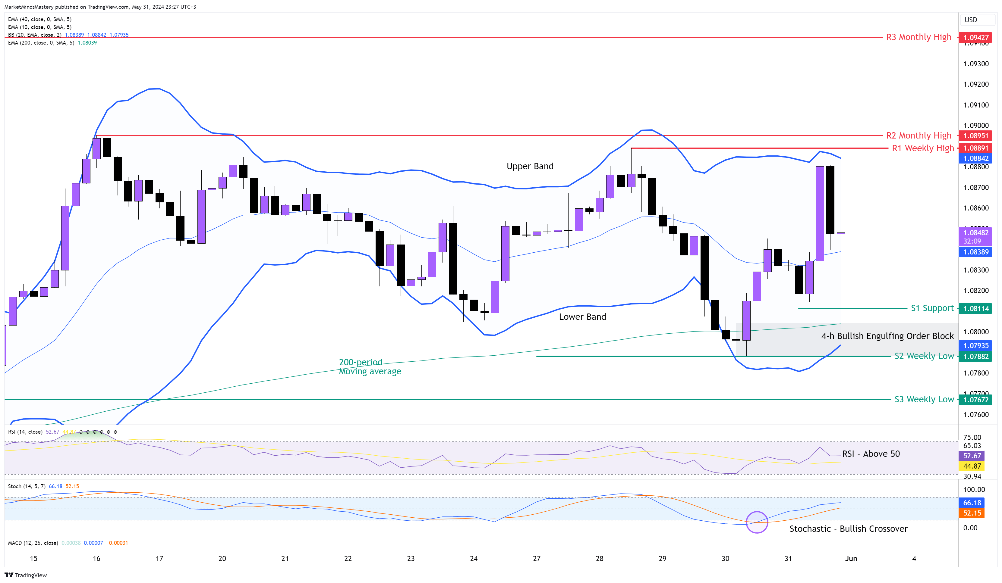 Poiché questo venerdì è il primo venerdì del mese di giugno, gli operatori di mercato si aspettano i NFP (Non-Farm Payrolls). Secondo il consensus, si stima che i NFP saranno registrati a 180.000 nuove buste paga negli Stati Uniti rispetto alle 175.000 buste paga aggiunte nel rapporto precedente.